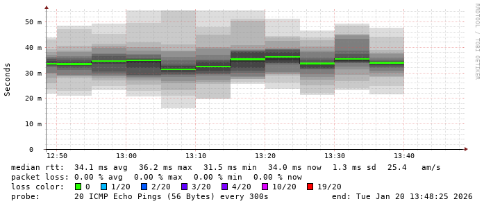 2. Median RTT 0.032700 seconds