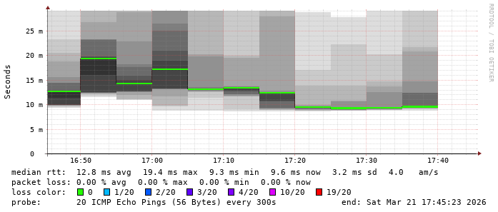 5. Median RTT 0.013100 seconds